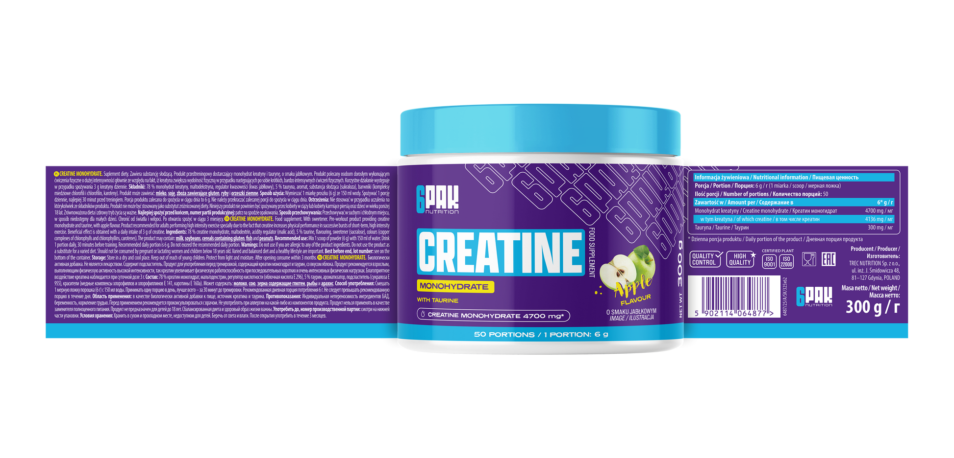 Maximiere deine Performance mit 6PAK Creatine Monohydrate. Kreatin ist eines der am besten untersuchten Nahrungsergänzungsmittel der Welt und ein absolutes Muss für jeden Athleten, der seine körperliche Leistung bei kurzzeitigen, intensiven Belastungen steigern möchte. 6PAK liefert dir pure Kraft in einer ergiebigen 300g-Dose.